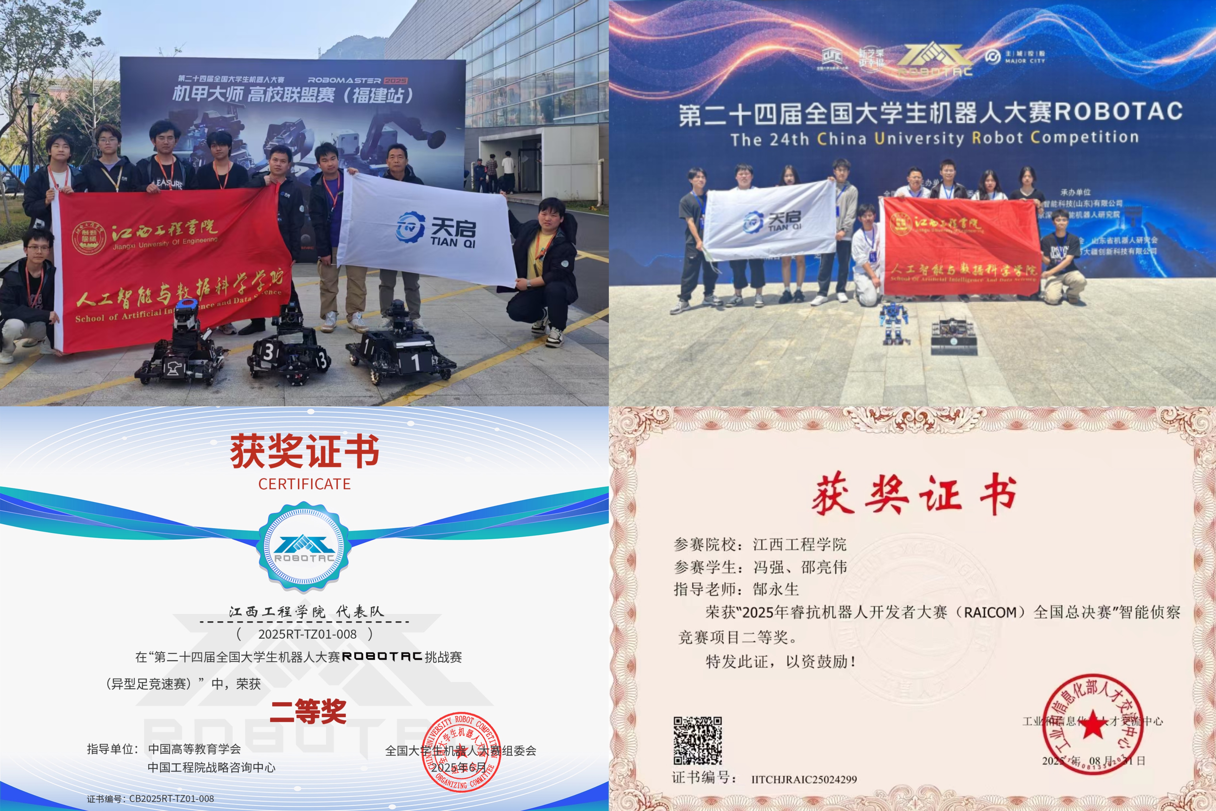 当RoboMaster机甲大师的轰鸣声在全国大学生机器人赛场回荡,当ROBOTAC异形足机器人的竞速身影划破赛场,当睿抗(RAICOM)机器人开发者的算法模型精准定位动态目标——2025年,星空(xingkong)体育官方网站人工智能与数据科学学院负责人巢喜剑表示,学院“机器人军团”在全国乃至全球顶级赛事中屡创佳绩,以四项大赛的突破性战果,在科技竞技舞台上刻下了闪亮的“江工印记”。