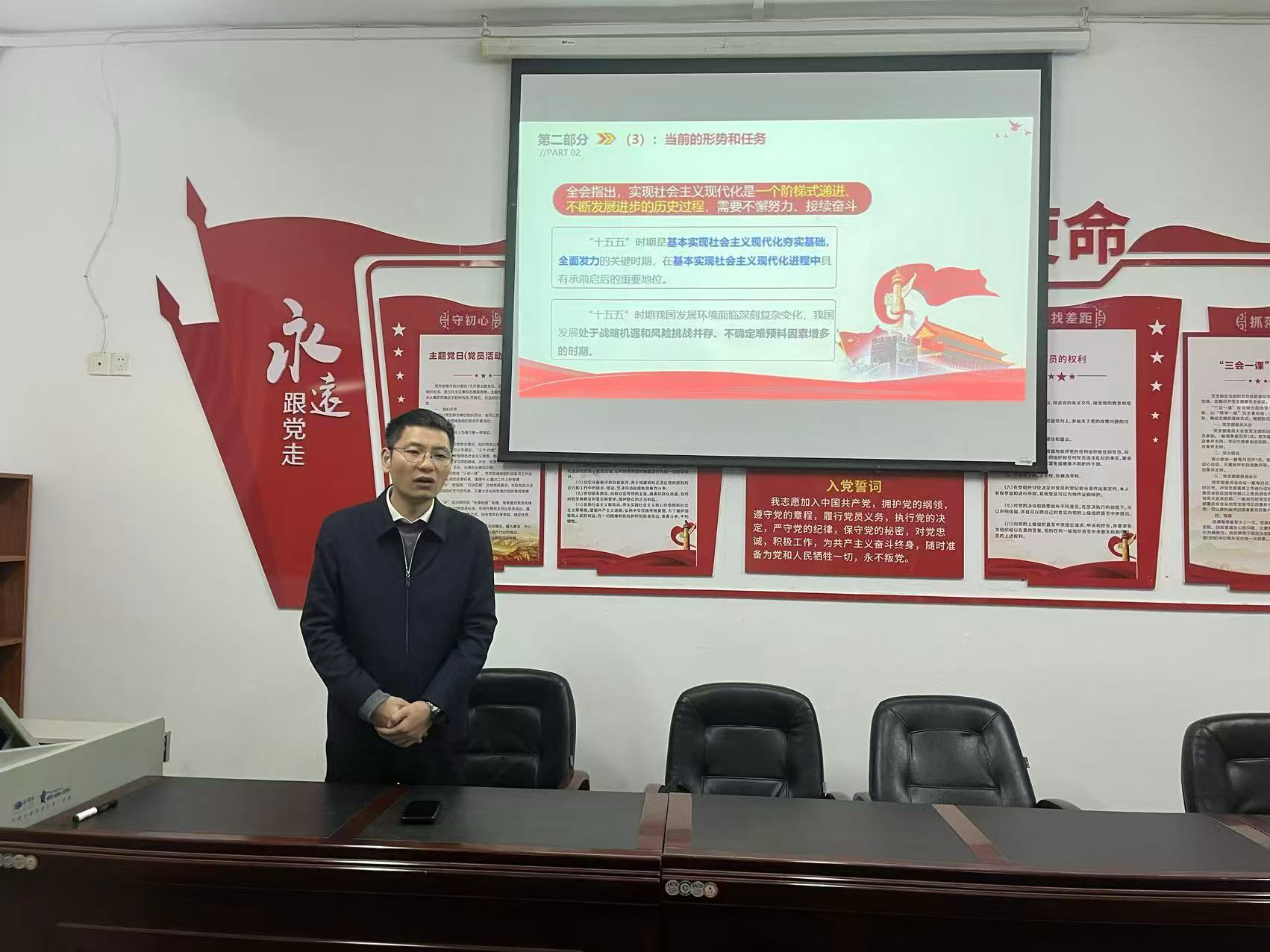 讲座中,乐俊杰首先系统介绍了党的二十届四中全会的基本情况、重大意义和主要议程。他重点围绕党的二十届四中全会审议通过的《中共中央关于制定国民经济和社会发展第十五个五年规划的建议》的核心要义和战略部署进行了深入浅出的解读,帮助预备党员、入党积极分子们深刻理解国家未来五年的发展蓝图、指导思想、目标任务和重大举措。