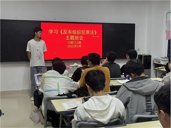 为了预防有组织犯罪,加强有组织犯罪严重性的宣传力度,维护国家和社会安全,构建良好的校园环境,促进学生对有组织犯罪的认识了解,区块链学院于5月19至5月22日在学院各班级开展学习《反有组织犯罪法》 主题班会。