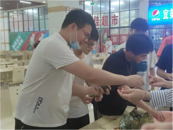 在端午佳节临近之际,为了促进传统文化和劳动教育相结合,在实践中弘扬优秀传统文化,增强传统节日的体验感和文化感,深入践行劳动教育。在学校的悉心关怀和统一部署下,6月1日下午,区块链学院组织全院师生在学校食堂开展了端午节包粽子活动。食堂里热闹非凡,大家提前准备着糯米、粽叶、蜜枣等食材,迎接端午节。