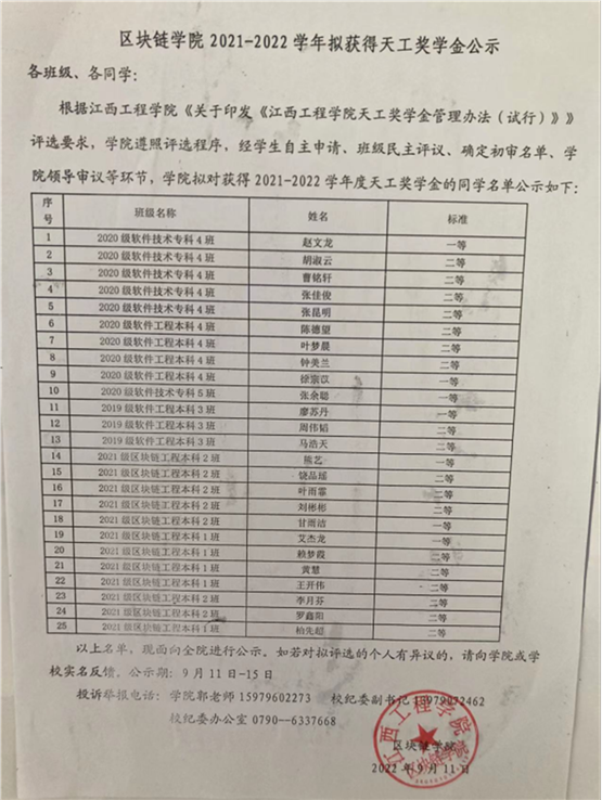 附:区块链学院2022-2023学年天工奖学金初审名单表
