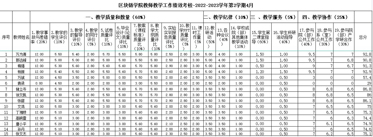 区块链学院教师教学工作绩效考核-2022-2023学年第2学期4月