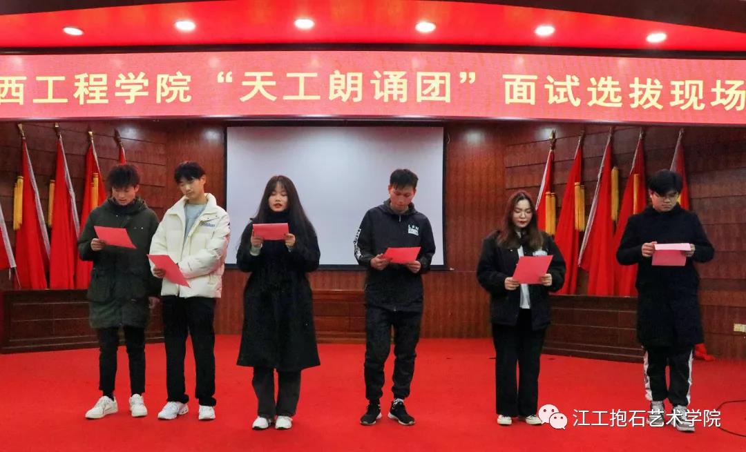 为了落实党中央对高校思想政治工作的一系列指示精神,强化社会主义核心价值观,构建新时代有中国特色的校园文化,现我校组织成立“天工朗诵团”。1月6日下午6:00,我院在学术报告厅一楼组织开展“天工朗诵团”面试选拔赛,同学们积极响应,认真准备,为我们展现出优秀的朗诵作品和当代青年大学生应有的责任和态度。