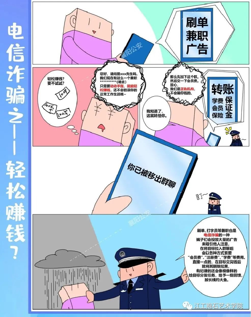 电信诈骗的受害群体广泛,因为诈骗分子采取的是漫天撒网的方式,碰着一个是一个,有很强的随机性,所以受害者包括社会各个阶层,不论是企业高管、个体工商户、公务员,还是老人、学生、高校教授,都有可能不幸中招。反诈漫画:带你了解电信网络骗子们的诈骗套路,看看他们是怎么样盯着你的钱包的!