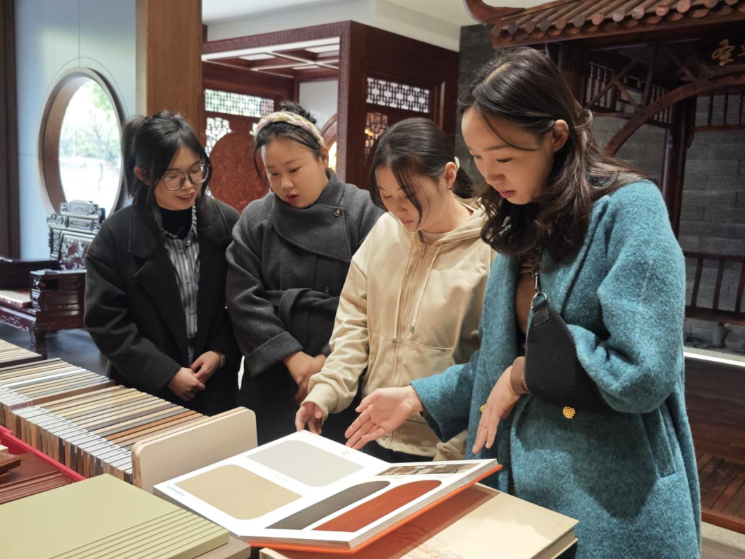在金冠豪原木高定生活馆,学院一行人受到了胡总的热情接待。首先,胡总详细介绍了生活馆的发展历程、经营理念、业务范围以及在原木高定家居设计领域的独特优势与创新实践。随后,在胡总的引领下,深入参观了展示厅,直观感受了从原材料到精美家居成品的全过程,对企业的生产工艺、设计风格和质量把控有了全面且深入的了解。