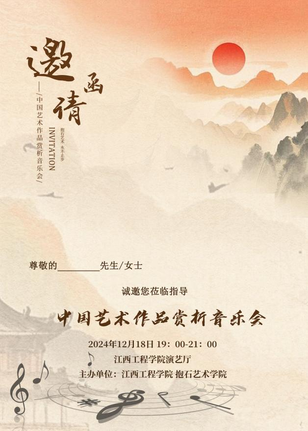 12月18日19:00,抱石艺术学院在文北楼四楼演艺厅开展“华韵颂”中国艺术作品赏析音乐会暨音乐表演教研室课程思政建设成果交流会,一场融合艺术之美与思政之光的精彩盛宴就此展开,吸引了全校众多师生以及音乐爱好者的目光,共同见证这场意义非凡的活动。