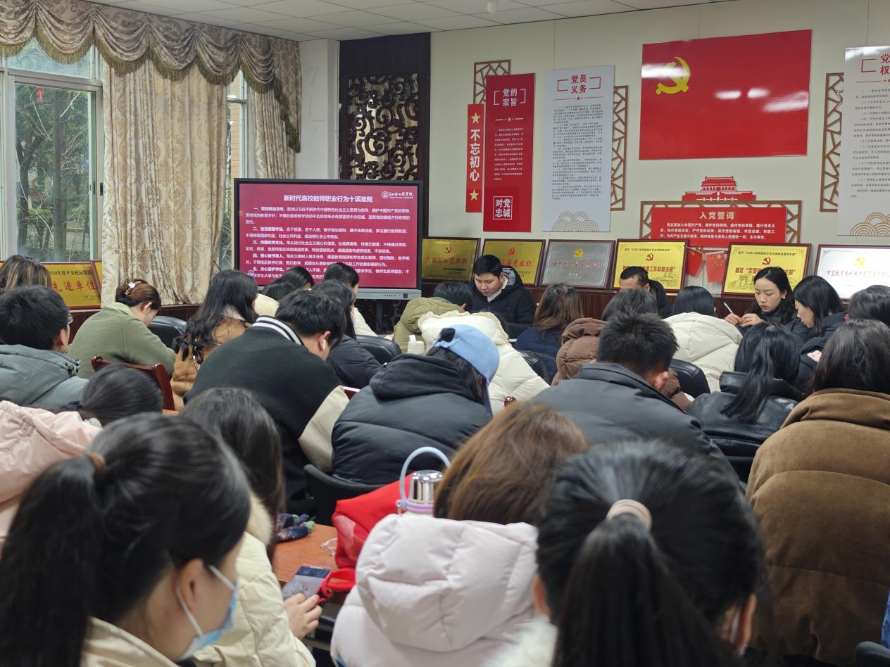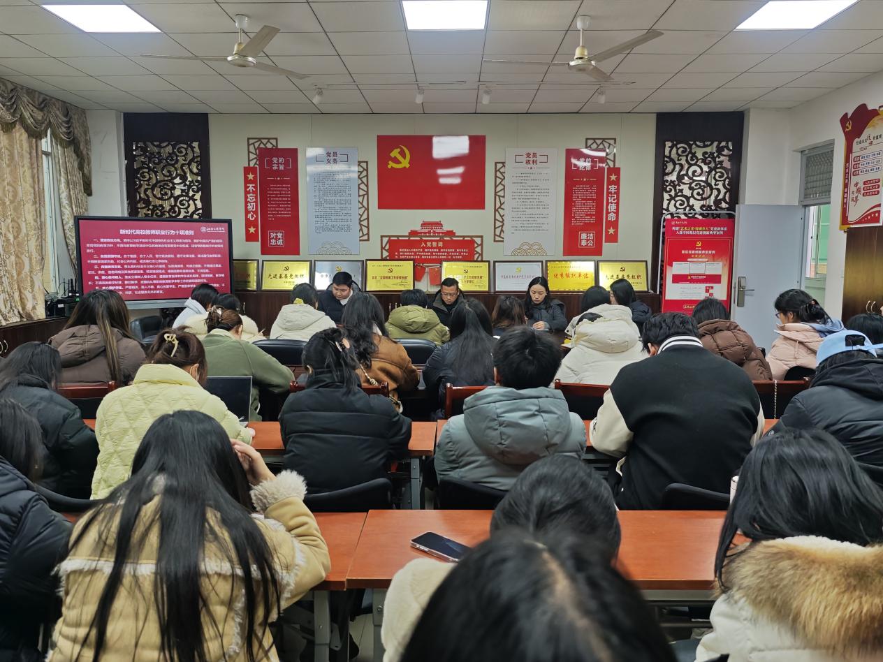会上,王冬冬副院长首先带领全体教师深入学习了《新时代高校教师职业行为十项准则》。他强调,全体教师应严格对标《准则》,强化“以德立身、以德立学、以德施教”的意识,并重点自查是否存在重技能轻德育、重教学轻育人的倾向。他提到,作为教师,更应以“责任心”和“使命感”服务学生成长,将职业道德融入课堂、实训、竞赛等各个环节,努力塑造“抱石精神”引领下的师德典范。同时,他还传达了《星空(xingkong)体育官方网站教学事故认定及处理办法》的相关要求,提醒全体教师对照《处理办法》,强化“规范执教、严谨治学”的意识,并重点自查教学纪律执行中是否存在课堂管理松散、考核评价随意、教学计划执行不到位等问题。他鼓励民办院校教师以更高的标准要求自己,严守教学规范,将教学标准融入备课、授课、实训指导等各个环节,严肃对待教学事故的预防与处理,共同维护良好的教学秩序。