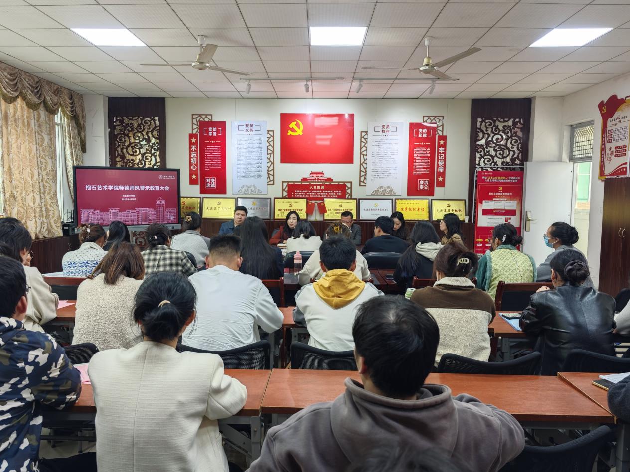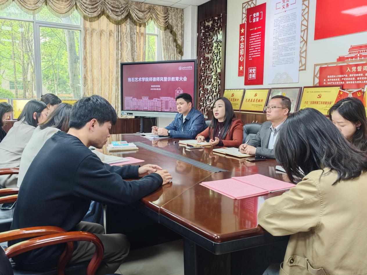 4月2日下午2:30,抱石艺术学院在艺术楼202会议室召开了师德师风警示教育大会。全体教师参加了此次会议,会议由党总支书记张志胜主持。