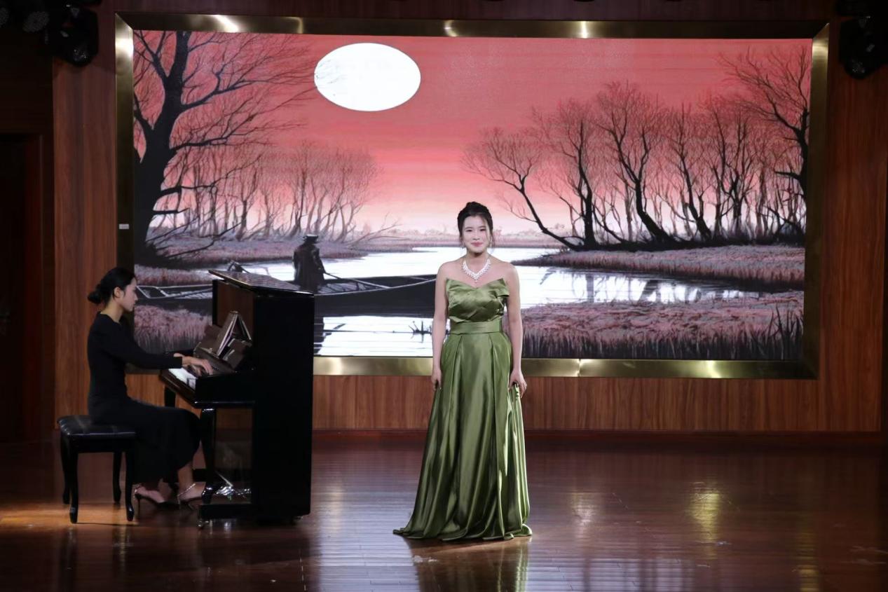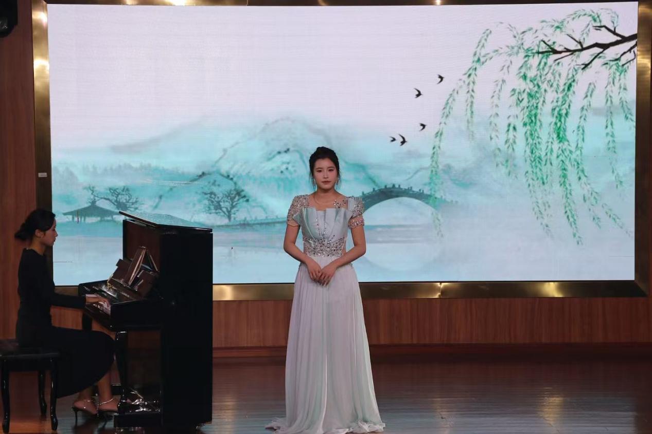音乐会在温馨而典雅的氛围中拉开帷幕。黄晶京以其纯净的嗓音和精湛的演唱技巧,为观众带来了一场难忘的音乐之旅。演唱曲目丰富多样,既有古典艺术歌曲如《汉宫春·立春日》《江城子·乙卯正月二十日夜记梦》,也有经典歌剧选段《斗牛士之歌》,还有地方特色浓郁的民谣《越调小桃红·采莲女》等,充分展现了黄晶京全面的音乐素养和深厚的艺术功底。