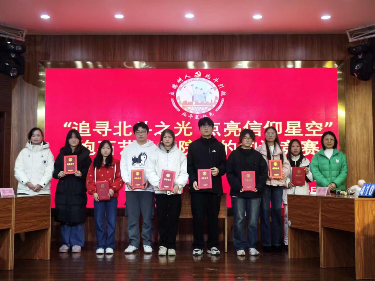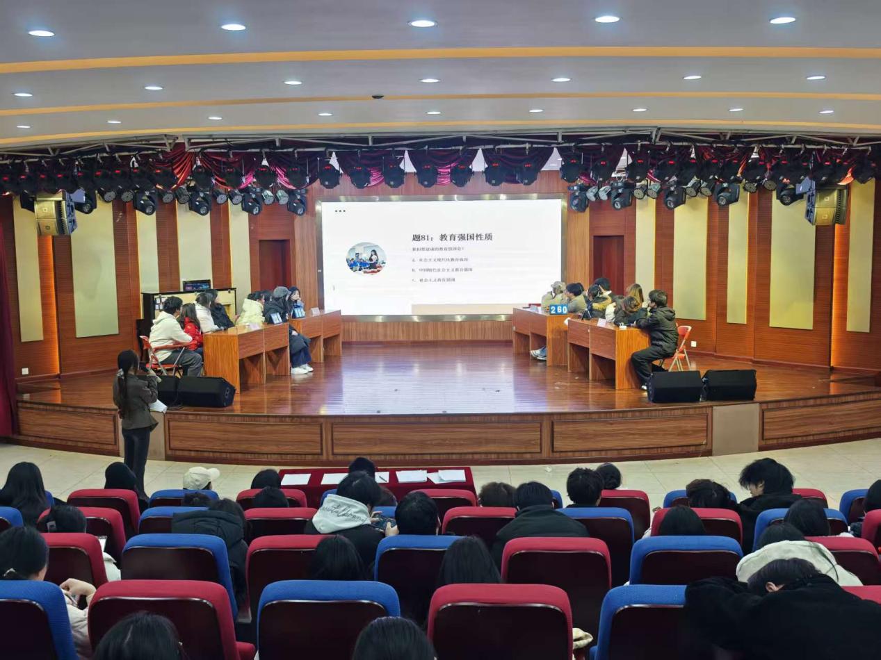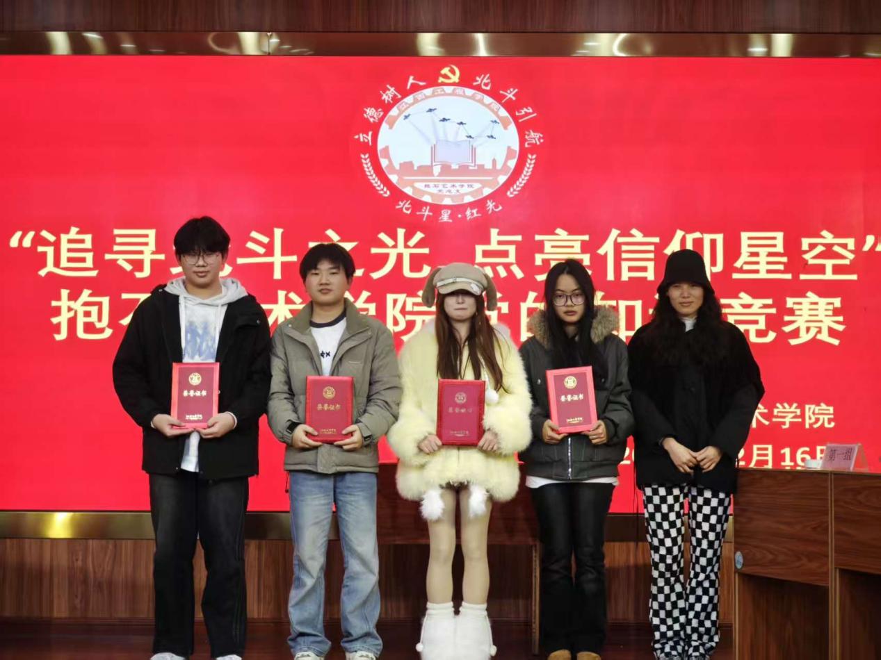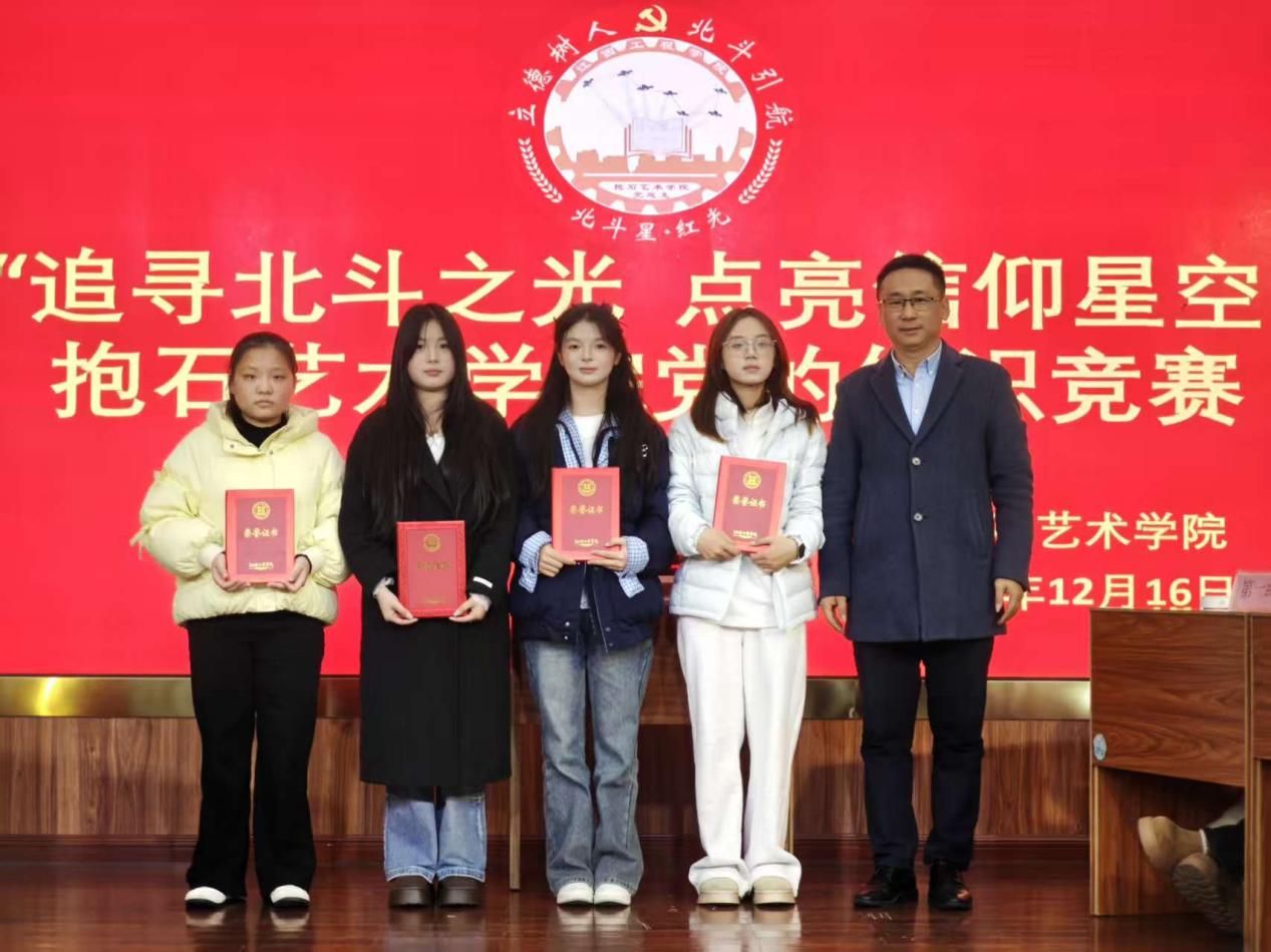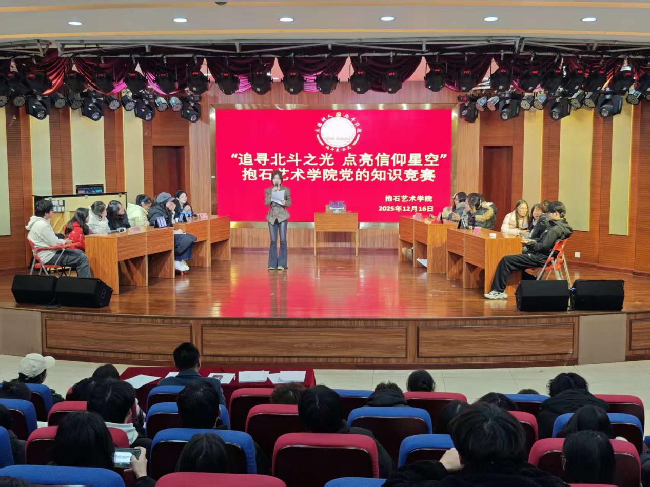 为深化党史学习教育,引导青年学子坚定理想信念,2025年12月16日晚7时,抱石艺术学院在文科楼4楼演艺厅成功举办“追寻北斗之光·点亮信仰星空”党史知识竞赛。学院党总支书记刘永东、部分教师代表,以及全体入党申请人、入党积极分子齐聚一堂,共同参与了这场别开生面的理论学习与思想交流活动。