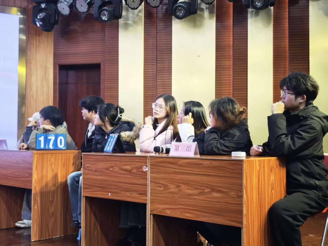 比赛现场气氛紧张热烈,各队选手精神饱满、应答敏捷,展现了抱石艺术学院学子扎实的理论功底和积极向上的精神风貌。在抢答环节,队员们默契配合、踊跃争先;在风险题环节,各队权衡策略、沉着应对,将现场氛围推向高潮。观众席上掌声阵阵,互动环节师生积极参与,体现了学院浓厚的理论学习氛围。