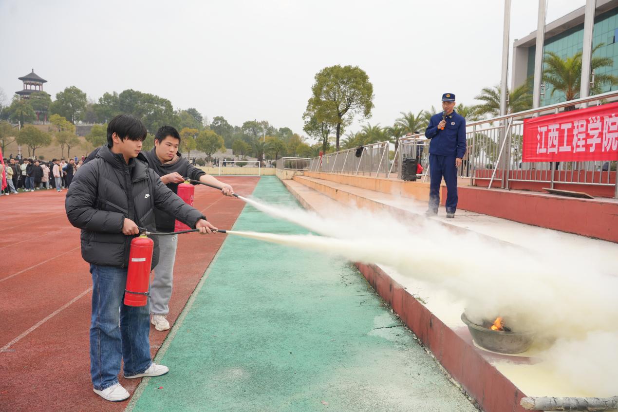 疏散结束后,消防员面向全体师生开展灭火器使用培训。通过“提、拔、握、压”四步口诀讲解,结合油盆灭火实操演练,师生代表亲手操作灭火器材,掌握初期火灾扑救技能。