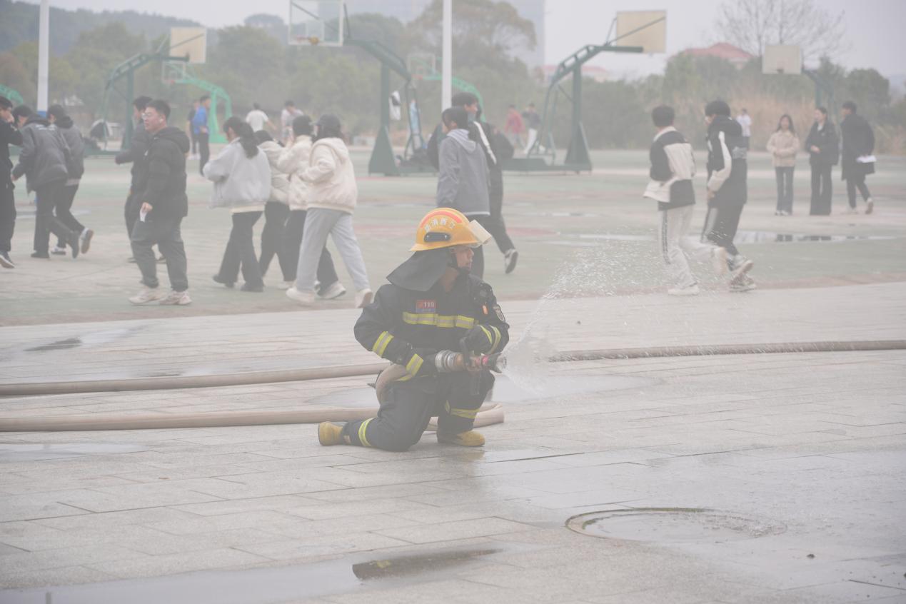 学生;另一队架设高压水枪对“起火点”进行扑救,完整演示火情处置流程。