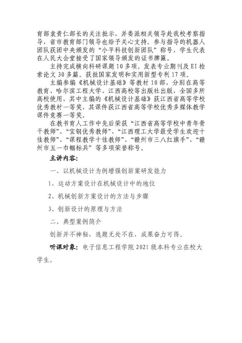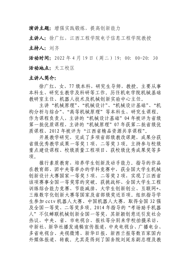 【学术通知】电子信息工程学院教授徐广红学术讲座:增强实践锻炼,提高创新能力