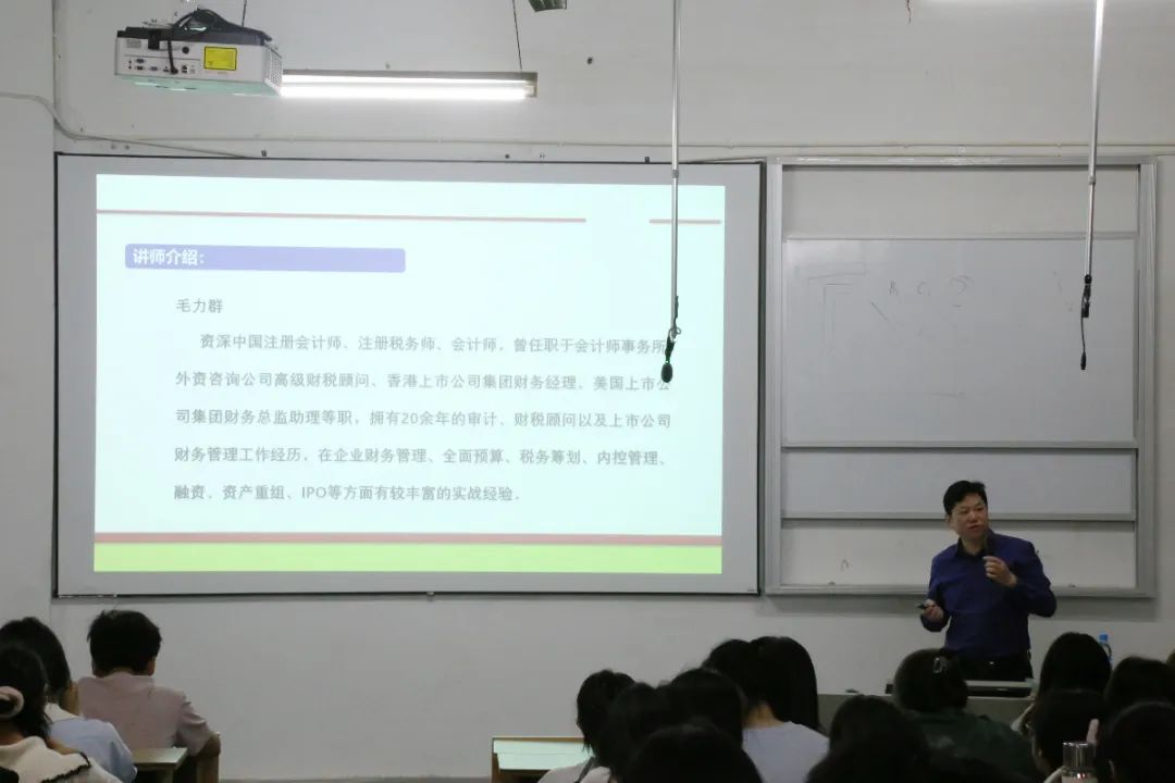 为提升大学生财务人员的专业素养,增强其服务中小企业的能力,为未来的职业生涯奠定坚实的基础,也为国家经济发展培养更多优秀的财务管理人才。2025年4月14日19:00,经济管理学院在天工校区南教学楼C105教室举行“中小企业财税规划与财务人员职业发展路径”专题讲座,由毛力群主讲,经济管理学院学生代表参加。
