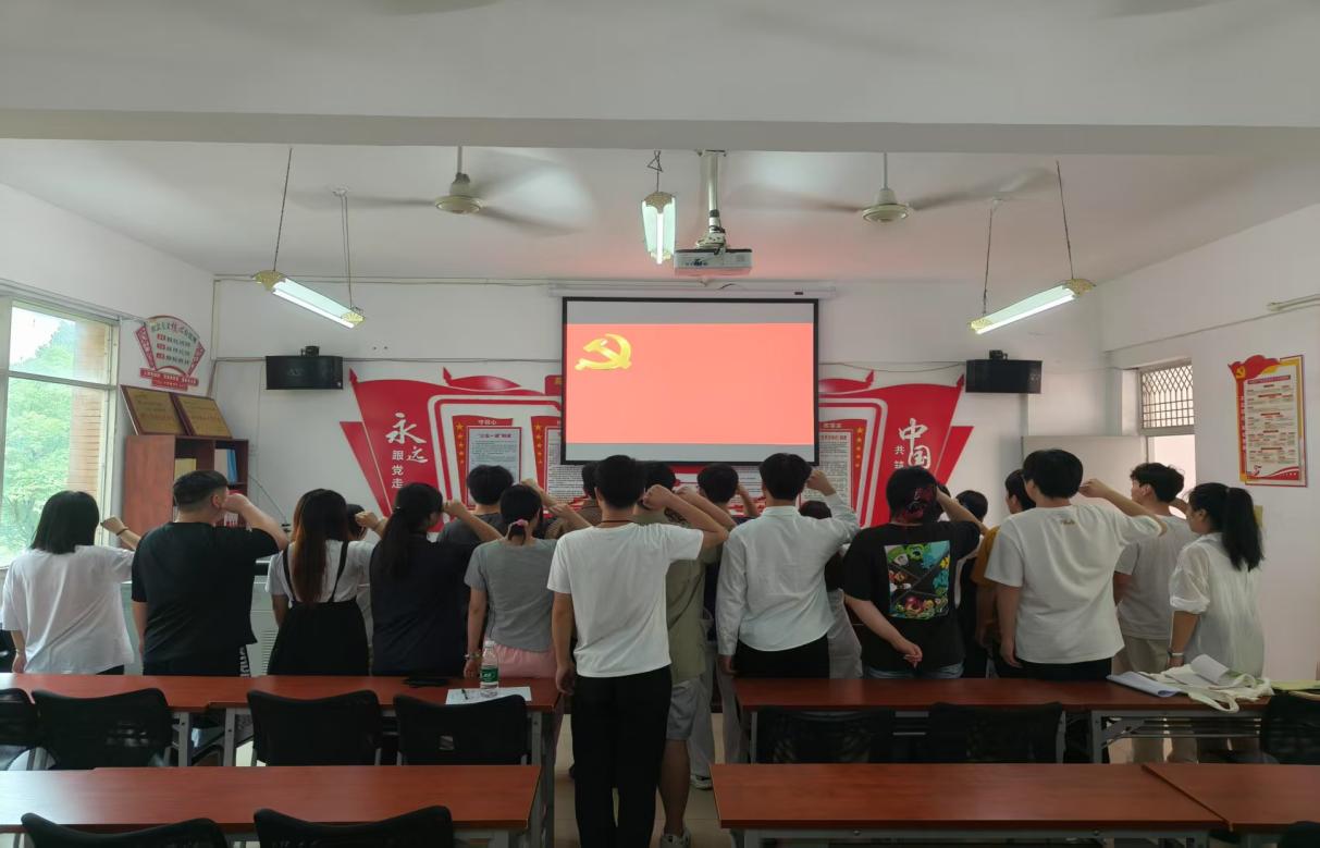 活动最后,组织了毕业生党员重温入党誓词。面对鲜艳的中国共产党党旗,在胡文秀的领誓下,全体毕业生党员庄严举起右手,以铿锵有力的声音重温入党誓词,宣誓声整齐而坚定,让每位党员再次感受到入党时的神圣与光荣,也更加坚定了为党和人民事业奋斗终身的信念。