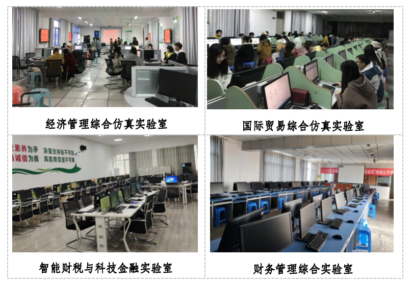 经济管理学院实训实践教学条件优越,学院建有数字财经综合实验室、财务管理综合实验室、手工财会实验室、国际贸易综合仿真实验室、人力资源管理仿真实验室、经济管理综合仿真实验室、金融综合实验室、智能财税与科技金融实验室、商务网站建设实验室、电商模拟实验室、网络营销实验室、摄影实训室、新文科综合实训室、物流与供应链管理实训室、跨境电商实验室等为一体的现代财经实训中心,建有稳定的校外实习、就业基地30余个,与企业合作建设了校企一体真实场景的众创空间、教学名师工作室。