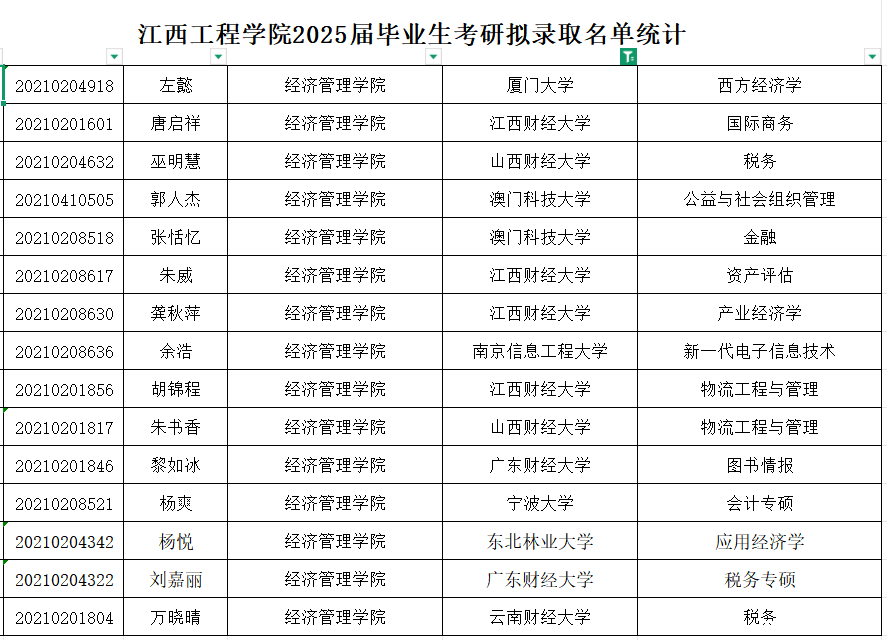 学院围绕落实立德树人根本任务,树立了以学生为本,从实际出发,促进学生全面发展的工作理念。以师德、师风、教风建设带动学风,充分发挥教师在学风建设中的主导作用;以系列知识技能竞赛与社会实践为教育载体,增强学生的实践能力和创新意识,师生满意度逐年攀升,实现“形成优良学风、崇尚优良教风、提高人才培养质量、促进学生全面发展”的目标,连续多年获评“优良学风学院”。在2025年全国研究生考试的激烈角逐中,共有33名同学顺利通过层层考验,成功获得拟录取资格。其中多位同学凭借卓越的实力与不懈的努力,成功考取厦门大学、宁波大学、东北林业大学、南京信息工程大学等双一流知名高校,为学院争得了荣誉,也为自己的学术深造之路开启了璀璨新篇。