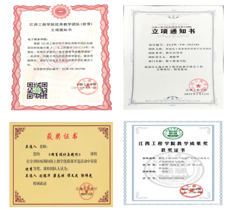 经济管理学院一直以“对准岗位设课程”为教学改革思路,积极探索先进的教学模式。充分利用专业实训场所和多媒体教学设备,提倡教师采用慕课、微课、翻转课堂新的教学模式和手段。通过教学改革,大大提高了学生的素质,近三年来,经济管理学院学生在各类专业大赛中屡获佳绩,我院团队在第八届江西省“互联网+”大学生创新创业大赛喜获金奖;在江西省电子商务“三创赛”获一等奖;我院学生在首届江西省大学生职业规划大赛成长赛道中获得银奖;第九届全省学生“学宪法 讲宪法”高校组演讲比赛三等奖;江西省2024年女性职业规划与发展大赛优秀奖;在第二届全国ETF模拟投资精英挑战赛荣获国家一等奖1项,二等奖17项,三等奖33项;荣获江西省移动商务大赛团体总分第一名2次,获奖200余项,其中省一等奖57项,每年各类比赛学生参与率超95%