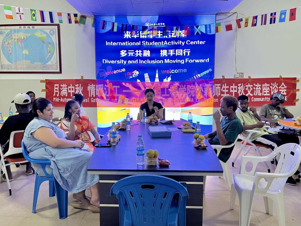 座谈会现场准备了月饼、传统零食与饮品,营造出温馨祥和的节日氛围。学院负责人与留学生们围坐交流,亲切询问了他们在校的学习进展与生活适应情况,并就学生们关心的课程学习、宿舍管理、校园活动等问题进行了细致解答与记录。会场笑语盈盈,互动热烈,充满了家的温暖。