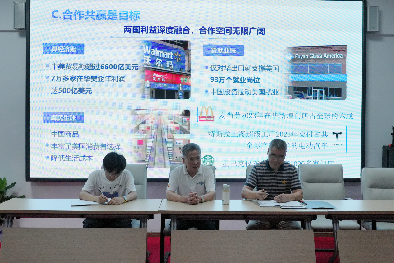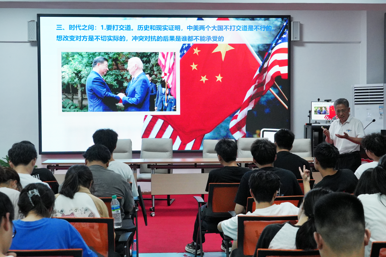 彭卫东教授以《新时期中美正确相处之道的时代探寻》为题,从历史经纬与现实格局切入。一是变局分析。对比川普执政时期“经济全球化逆流”“国际秩序冲击”“地缘安全重构”三大转折,剖析拜登政府“频频制造事端”的战略动向,揭示中美关系面临的结构性挑战;二是时代之问。彭卫东强调“中美不打交道不行,改变对方不切实际,冲突对抗后果难承”,提出相互尊重是前提、和平共处是底线、合作共赢是目标的相处原则,指出中国推动高质量发展与中国式现代化,本质是为世界发展贡献中国方案。