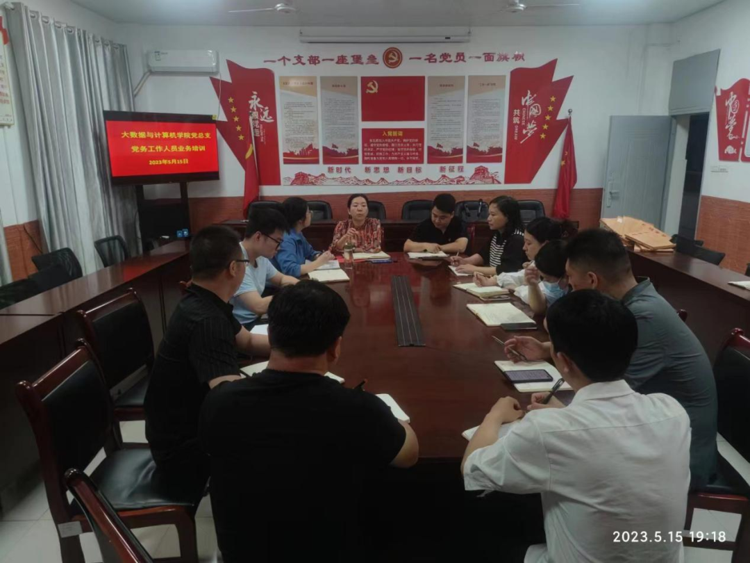 为深入学习贯彻落实党的二十大精神,切实加强学院党务工作者队伍建设,提升党务工作者的业务水平和工作能力,打造一支高素质的党务工作者队伍,不断推动基层党建工作再上新台阶,5月15日晚,大数据与计算机学院举办专职党务工作者培训会,我院党总支书记王娟主持会议,全体专职党务工作者参加会议。