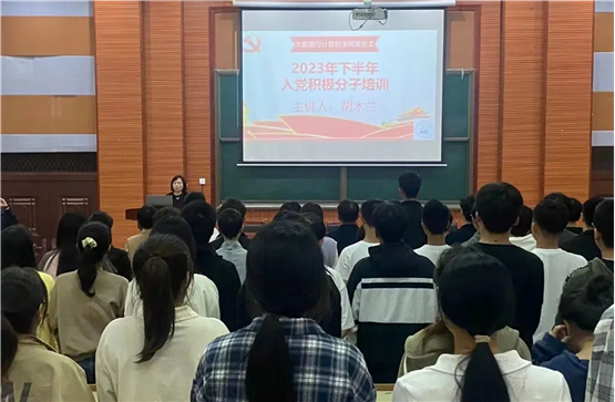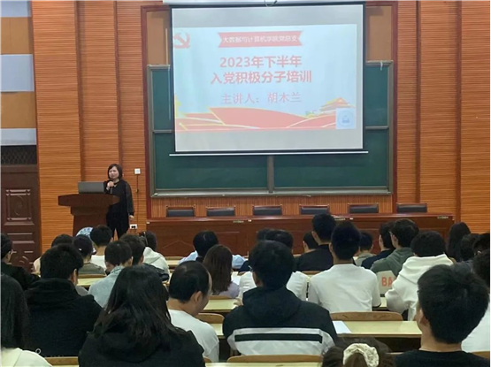 为进一步加强入党积极分子队伍建设,落实立德树人根本任务,引领大学生扣好入党“第一粒扣子”,提高党性修养,凝聚思想共识,大数据与计算机学院于2023年10月16日在教学楼二楼报告厅开展了入党积极分子培训大会。本次大会由学生支部书记胡木兰主持,2020级、2021级入党积极分子参与。