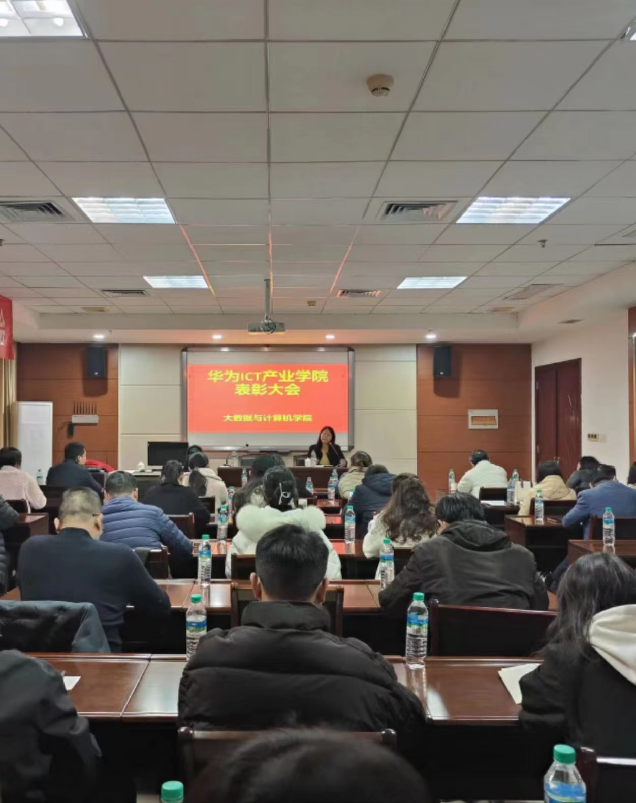 秋去冬来,为更好的培养华为产业链培养创新型和应用型技术人才,更好的促进高校ICT生态建设和人才培养,推动高校毕业生优质就业,为国家信息化产业发展和数字化转型升级注入新的活力。大数据与计算机学院于12月20日举办了“ICT产业学院表彰大会”。该会议由我院副院长伍琴兰、全体教师、企业工程师、部分学生代表参加。