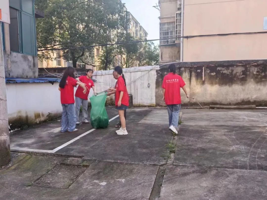 大数据与计算机学院青年“红志”社会实践队——青春在盛德社区绽放,垃圾清理行动进行时——三下乡清扫社区