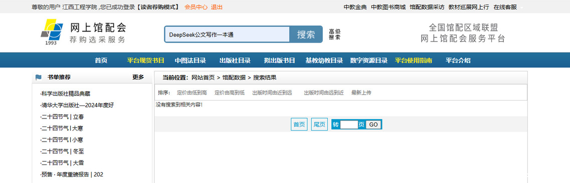 出版社目录模式:在这个目录模式下,出版社产品按照出版社列表分类,以出版时间的先后列表排序,同时可再按中图分类法分类。此模式可以选采到国内560多家出版社的图书品类。以清华大学出版社为例,点开后可以看到是按照出版时间排序,同时可再按中图分类法分类。
