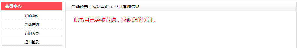 若本次荐购的图书被本馆的读者荐购过,则点击提交后显示如下: