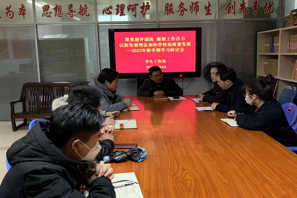 学工处:2月6日下午,学生工作处在行政楼501会议室召开2023年新学期全体学习研讨会。学工处全体人员参加了本次会议。会议要求:一是要发扬主人翁精神,查缺补漏,打赢本科教学工作合格评估提升之战;二是要转变工作作风,把被动工作转变为主动思考,把问题导向转变为主动谋划;三是要提高政治站位,在工作中稳中求进,打造学生工作品牌特色;四是要强化业务本领,提升服务意识,确保高质量完成春季学期各项工作。会上,学工处全体人员一一细谈了大会讲话感悟,汇报了本学期的工作思路、重点任务和工作举措。本次研讨会明确了学工处新学期学生工作的重点任务,打开了育人工作的新思路和新格局,为实现育人工作内涵式发展奠定了良好基础。学工处将坚持“以责任之心管理学生,以仁爱之心服务学生”的学生工作理念,以更加坚定的信心,务实的态度,创新的精神,饱满的热情,全面落实工作举措,推动学校各项事业高质量发展。