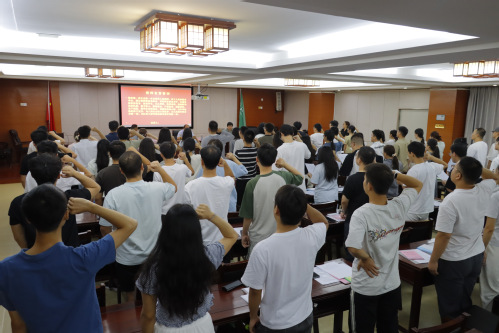 会议期间,全体新教师起立,右手握拳宣读《教师职业誓言》。举行教师宣誓活动意义非凡,是增强广大教师荣誉感和使命感的重要举措,旨在以宣誓忆初心,营造师德师风建设的良好环境,让教师把“教师宣誓誓词”真正内化为教书育人的目标和指南,立志做“有理想信念、有道德情操、有扎实学识、有仁爱之心”的“四有”好老师。