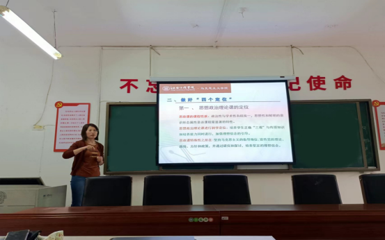 占老师首先引用习近平总书记在中国人民大学视察时强调的,“为谁培养人、培养什么人、怎样培养人”始终是教育的根本问题。作为一名思政教师,上好思政课对于国家、学校、个人三个层面的重要性,从总体上谈了个人的认识。接下来对于思政教师“如何站住站稳站好讲台”,占老师结合自己多年教学经验,分别从“四个定位”即“思想政治理论课、应用型本科院校、思政课教师要求、上好思政课的关键”四个方面作了详细讲解。其中谈到“思政课教师要求的定位”时,占老师强调,作为一名高校思政课教师要做好“守正创新”,坚持“学术研究无禁区、课堂讲授有纪律”,要做到“三个底线,四个不能”等要求。同时她还讲到,我们思政教师要把习近平总书记此次视察重要讲话中强调的“坚持党的领导,坚持马克思主义指导地位,坚持为党和人民事业服务,落实立德树人根本任务”贯穿到自己的教学当中去。在上好思政课的关键定位”方面,占老师结合自己在实际教学中的感悟,总结了“两性”“两力”(即“实效性和趣味性”、“吸引力和感染力”)的有关要求,同时进一步分享了在确立青年大学生在思想政治教育中的主体地位,解决思政课教学中教师主导与学生主体的矛盾,实现思政课教学上由权威型向对话型转换的教学方法等。
