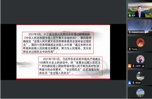 中国特色社会主义民主政治建设与以民生为重点的社会建设是中国特色社会主义“五位一体”总体布局的重要组成部分。如何讲好这两部分内容,对于很多青年思政课教师来说是一个不小的挑战。在这两次集体备课会上,中国人民大学习近平新时代中国特色社会主义思想研究院院长秦宣教授以“全过程民主”为题进行了备课导学,卢艳齐、姚立生、陈莹、扈帅帅、王亮等老师进行了教学展示,全国优秀教师刘涛教授和陕西省教学名师夏永林教授进行了备课点评。