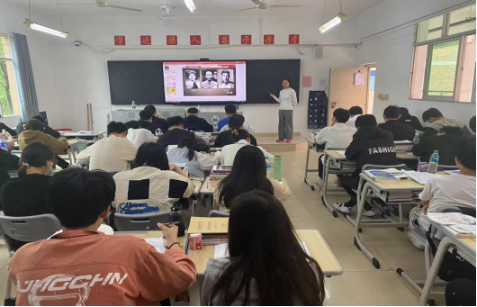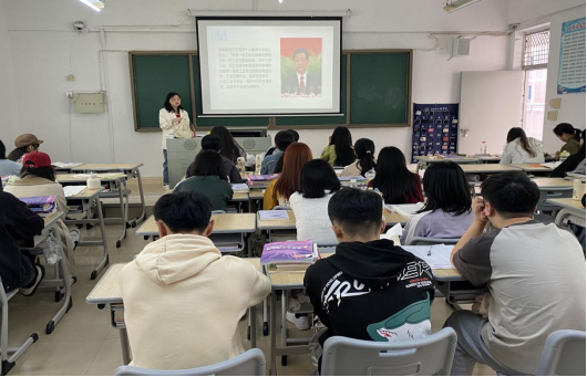 4.学院紧紧围绕“问题式专题化团队教学改革”主题,以讲政治和讲道理为着力点。5月15日,开展了“一课多师、师生同台”问题式专题化融合育人教学活动。课堂通过“师生同台”的方式,围绕“为什么农村包围城市是革命成功之路”向同学们展开解读。