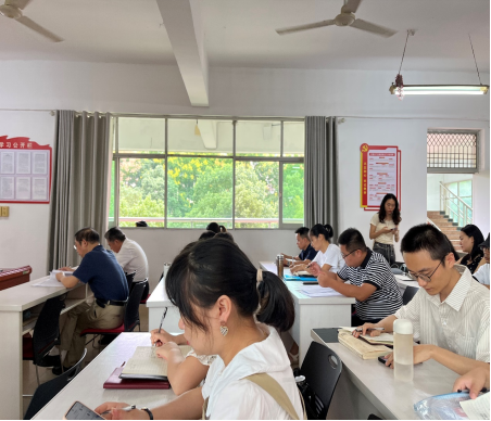 教研室教师舒秀兰老师、杨志光分别就本学期教学专题《开辟马克思主义中国化时代化新境界》《中国经济“形”稳“势”升》从教学目标、教学方法、逻辑思路、重点难点等方面进行精彩的说课或教学展示,并就《习近平谈治国治理》(第四卷)如何融入相关教学专题分享了自己的授课思路和教学经验。与会人员就专题教学重难点、《习近平谈治国治理》(第四卷)如何融入方式等问题进行了研讨与交流。整场备课会氛围良好、干货满满。