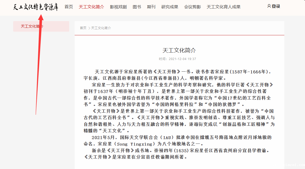 星空(xingkong)体育官方网站天工文化研究院的“天工文化特色资源库”和超星数字图书馆合作,包括天工文化简介、影视戏剧、图书、期刊、研究成果、会议剪影和天工文化育人成果等栏目。