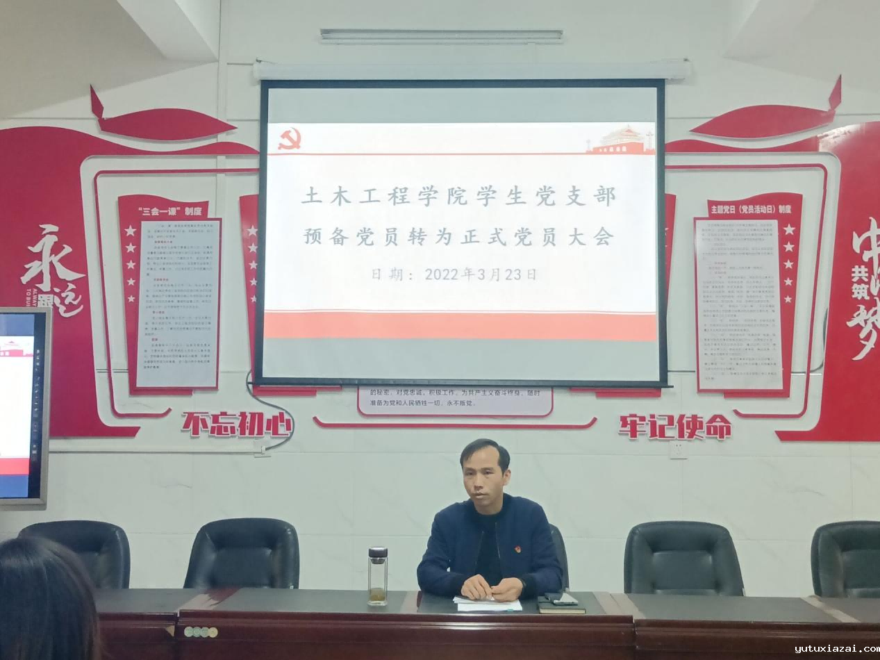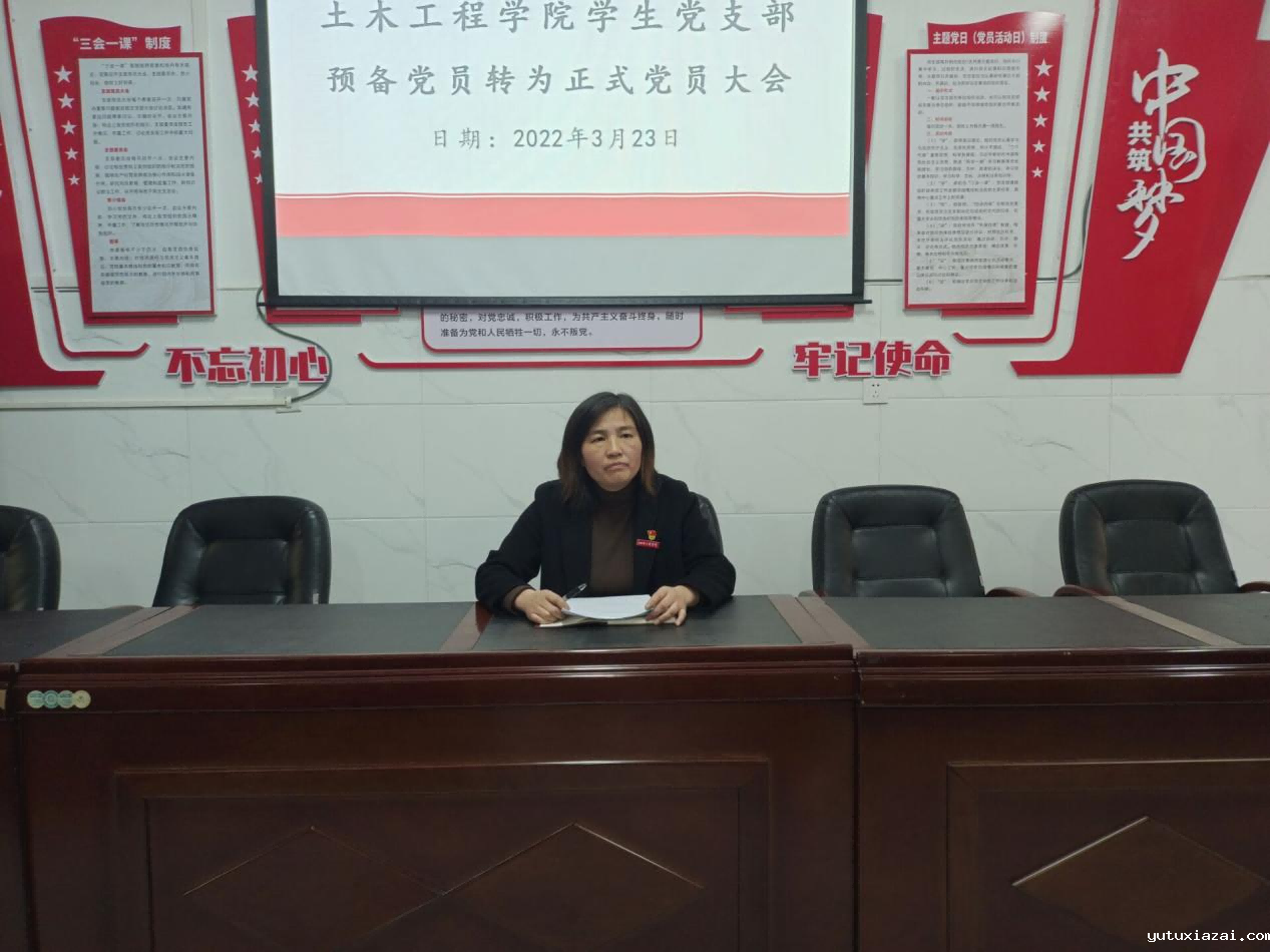 中国共产党是中国工人阶级的先锋队,中国工人阶级是中国最先进和最进步的阶级,因而成为中国革命的领导力量和社会主义的领导核心。为进一步加强党员队伍建设,增强党员队伍生机与活力。土木工程学院于3月23日在C栋209党员活动室召开学生党支部预备党员转为正式党员大会,土木工程学院全体教师党员、学生党员以及预备党员参加本次大会,本次大会由土木工程学院学生党支部书记胡金梅同志主持。