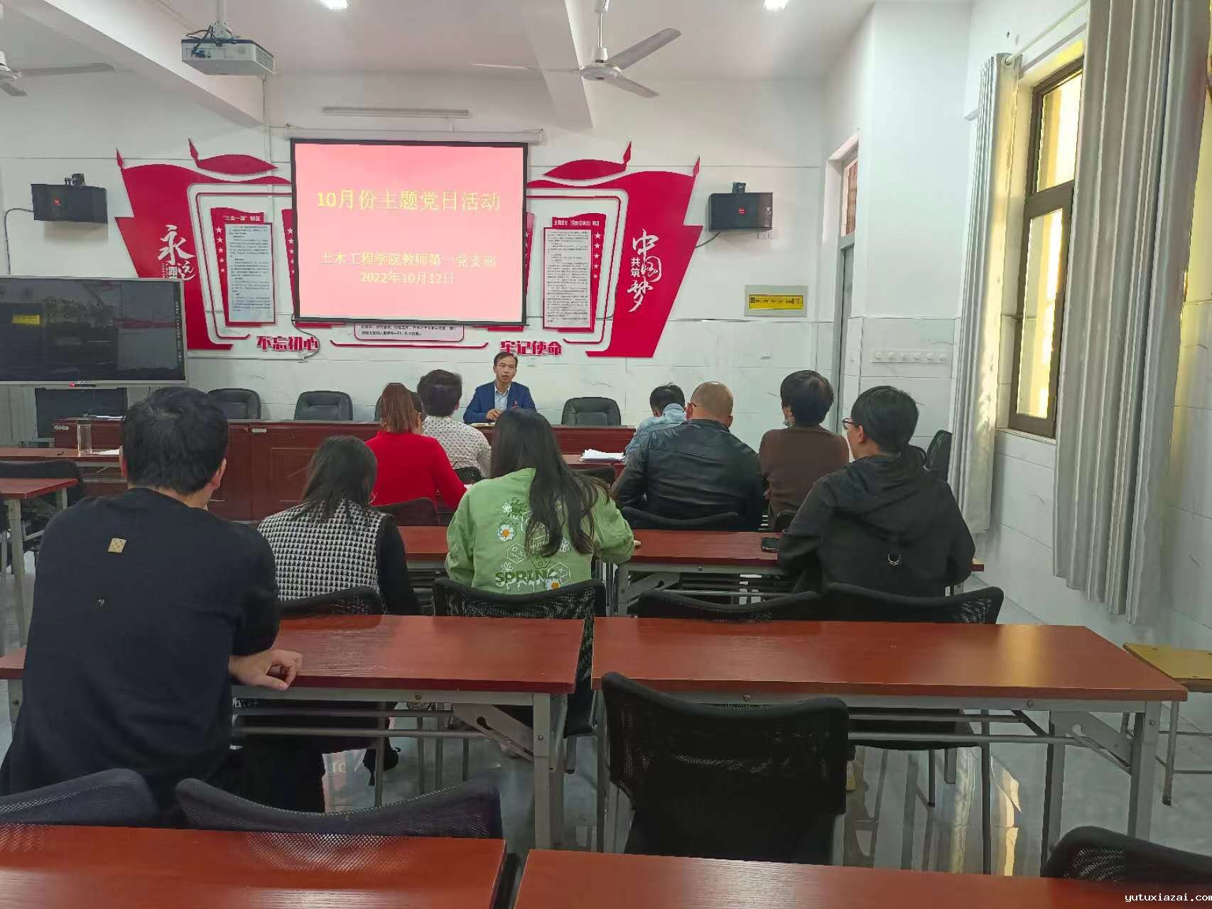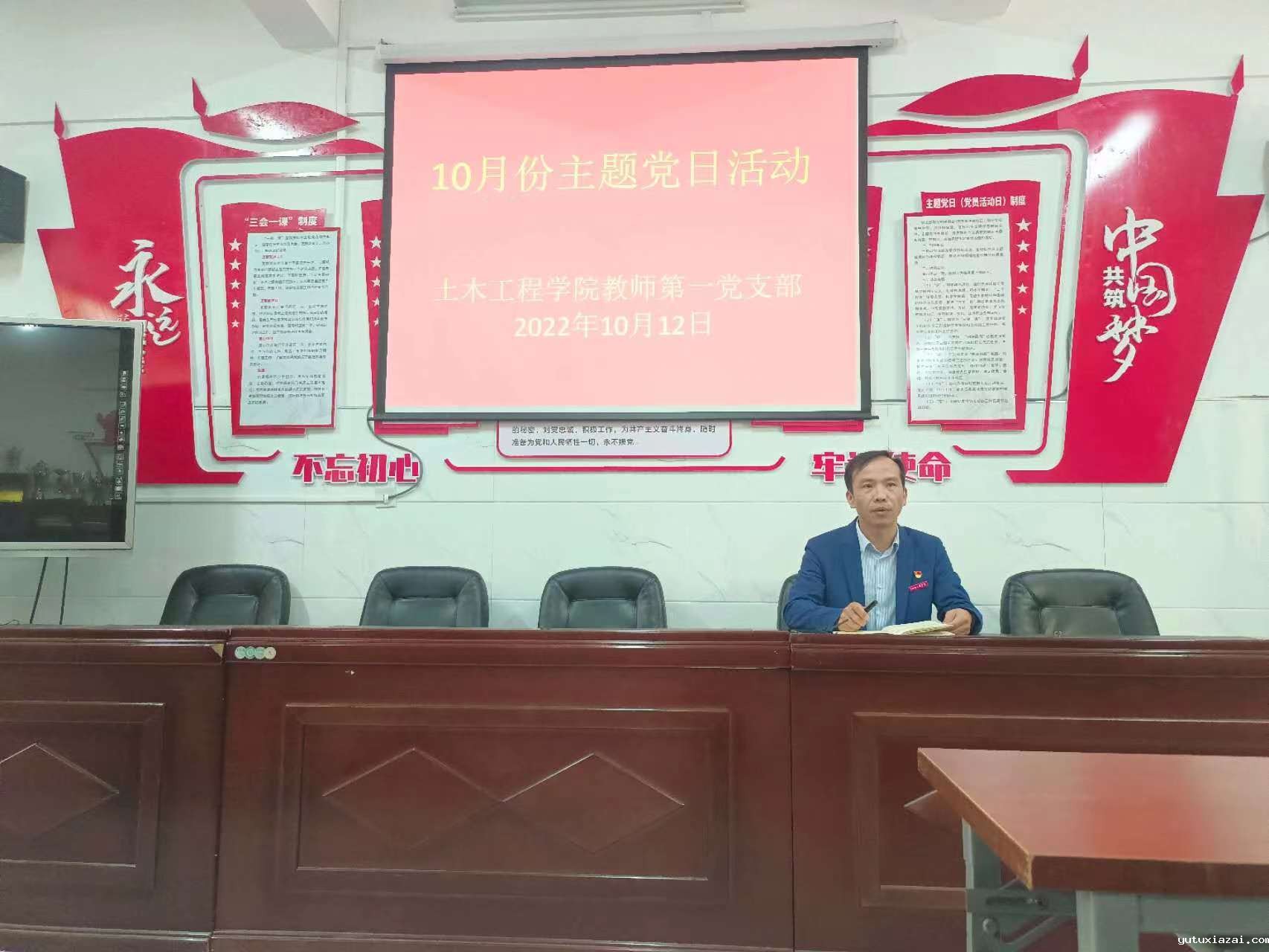 为庆祝中华人民共和国成立73周年,迎接党的二十大胜利召开,10月12日,土木工程学院第一党支部在C栋209会议室开展10月份主题党日活动。此次活动由土木工程学院教师第一党支部书记林逢春主持,土木工程学院教师第一党支部全体党员参加此次会议。