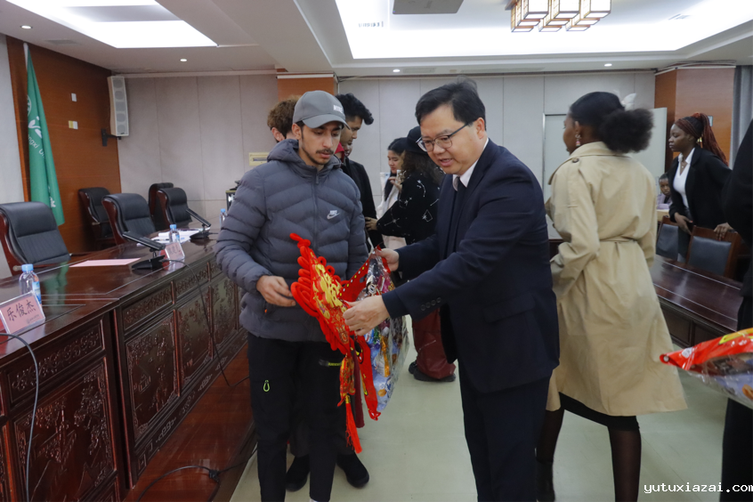 在温馨的发言之后,会议进入了一个特别的环节——过年礼包发放仪式。十位学生代表上台领取了精美的过年礼包,这些礼包包括了寓意吉祥的春节装饰品、中国传统美食以及生活用品等,体现了学校对留学生们的深切关怀。同时,学校还安排了老师将剩余的礼包在留学生宿舍进行发放,确保每位留学生都能感受到节日的喜悦。