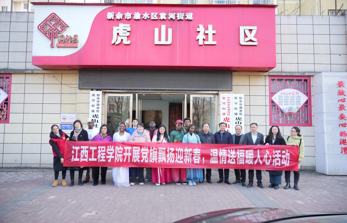 1月13日,学校党委组织部、党委宣传部组织机关党总支和10余名外国留学生走进袁河街道虎山社区,开展宣讲党的二十届三中全会精神、才艺表演、写春联送祝福等活动,旨在传承和弘扬中华优秀传统文化,发挥学校党员先锋模范作用,增强党员责任感与使命感,受到社区居民热烈欢迎和高度赞誉。
