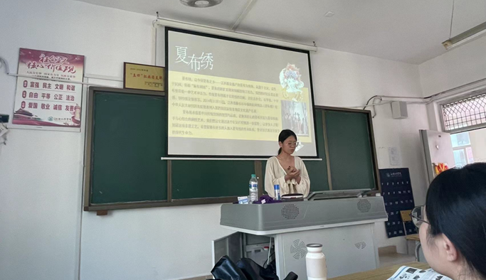 图三:学生进行非遗夏布数字化传承PPT开题汇报