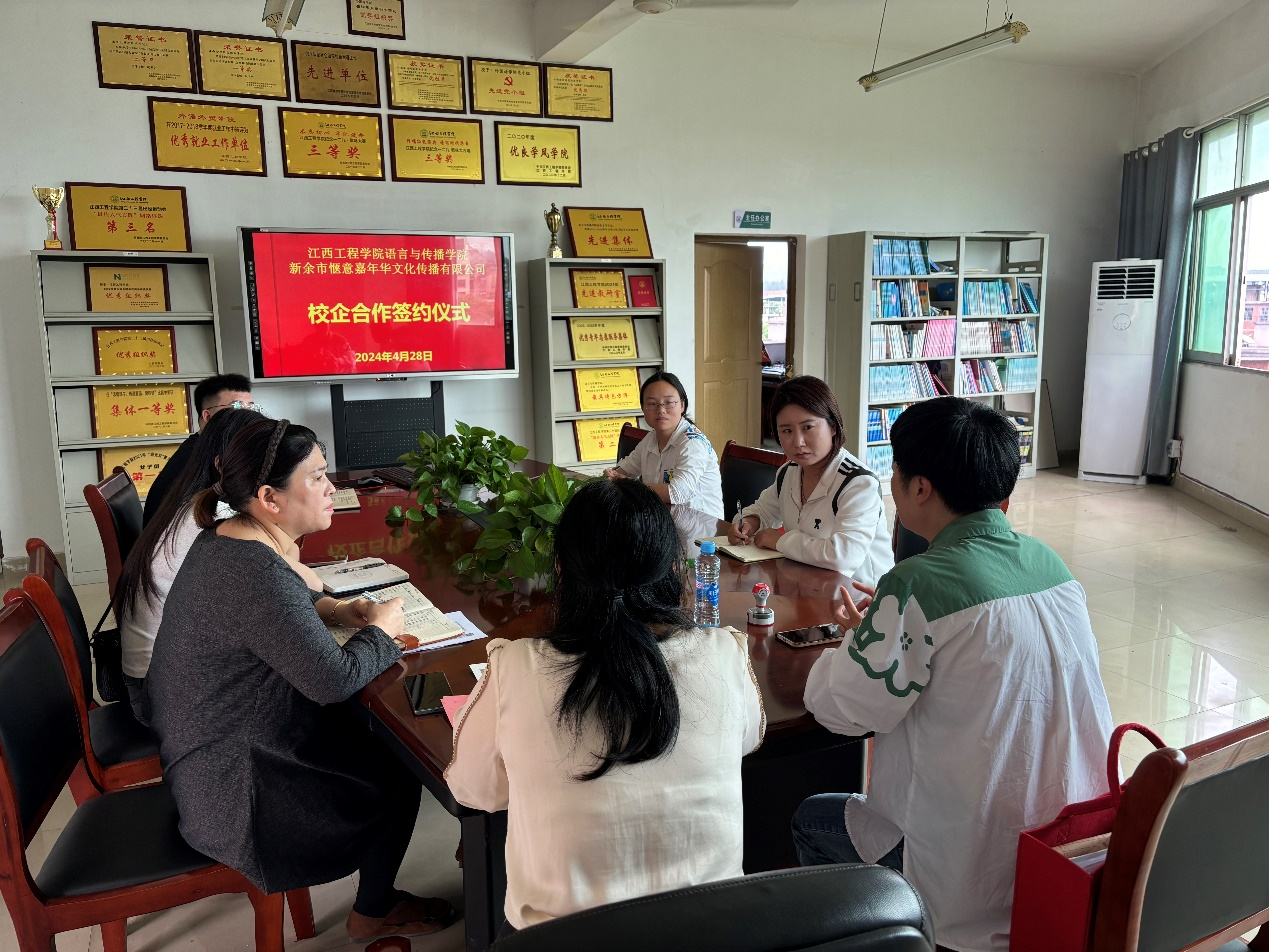 4月28日,星空(xingkong)体育官方网站语言与传播学院院长车凤英邀请新余市惬意嘉年华文化传播有限公司总经理徐莉来校,双方就促进毕业生就业事宜进行了座谈,并签订了校企合作协议。