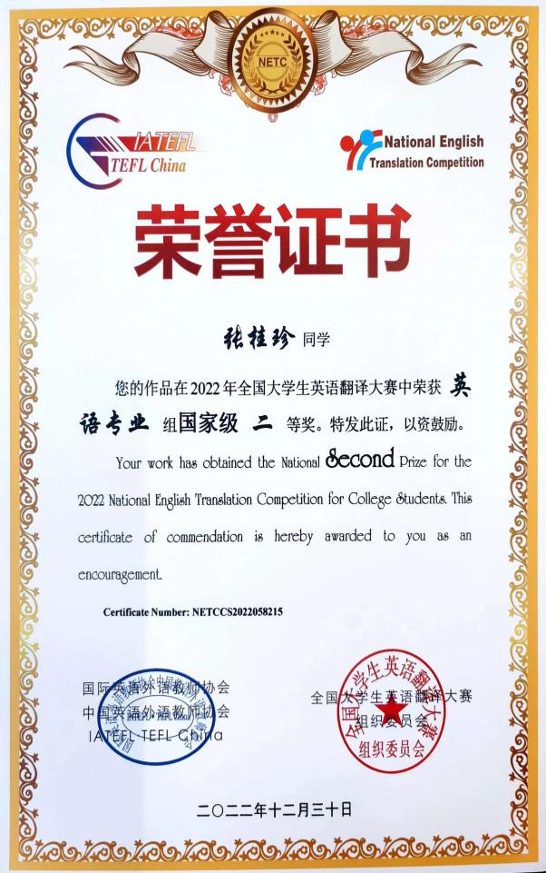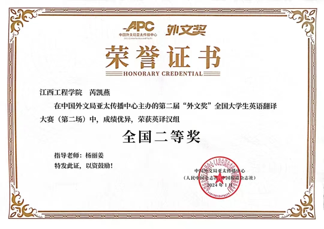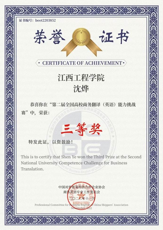 学院在进行专业人才培养时,既注重夯实学生的专业基础,同时创造条件让学生参加各类专业竞赛与活动,“以赛促教、以赛促学”的成果明显。学生参加全国大学生英语竞赛、全国商务英语技能大赛、全国口译大赛等各类竞赛,近三年共获得国家级奖项3个,省级一等奖8个、二等奖20个、三等奖30个、团体奖2个。