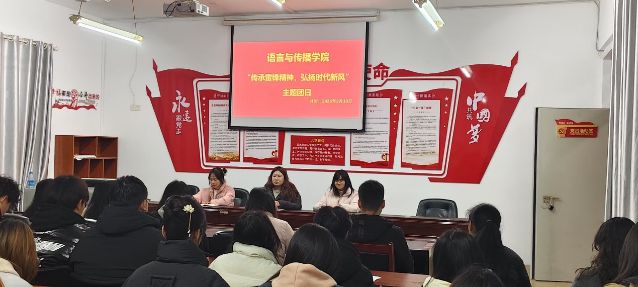 为深入学习雷锋精神,筑牢信仰根基,为中华民族伟大复兴的中国梦注入活力,3月10日,语言与传播学院在C401举行了以“传承雷锋精神,弘扬时代新风”为主题的团学活动。