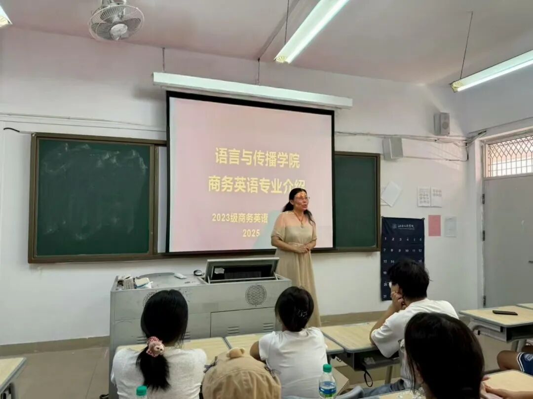 为帮助同学们更好地认识所学专业,明确学习方向与未来发展,9月4日,语言与传播学院院长车凤英为2023级商务英语专升本班级和2025级商务英语本科班,带来了两场精彩的专业介绍课。