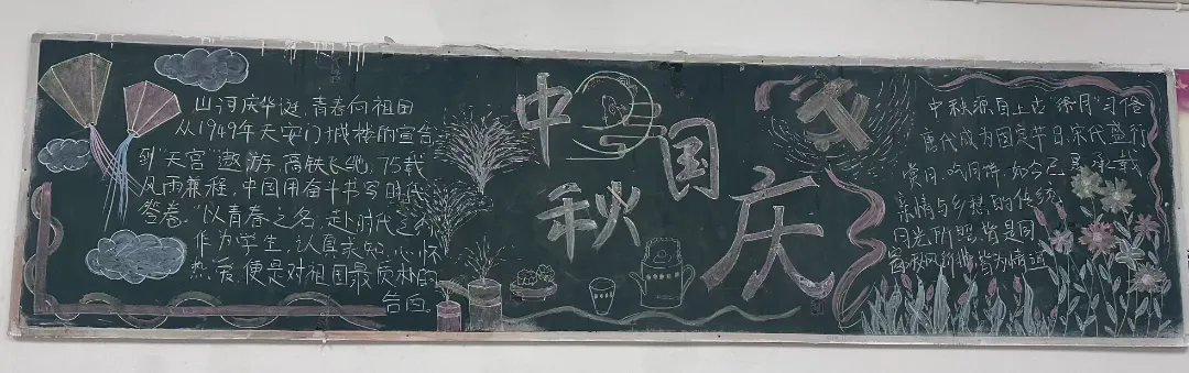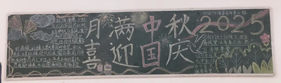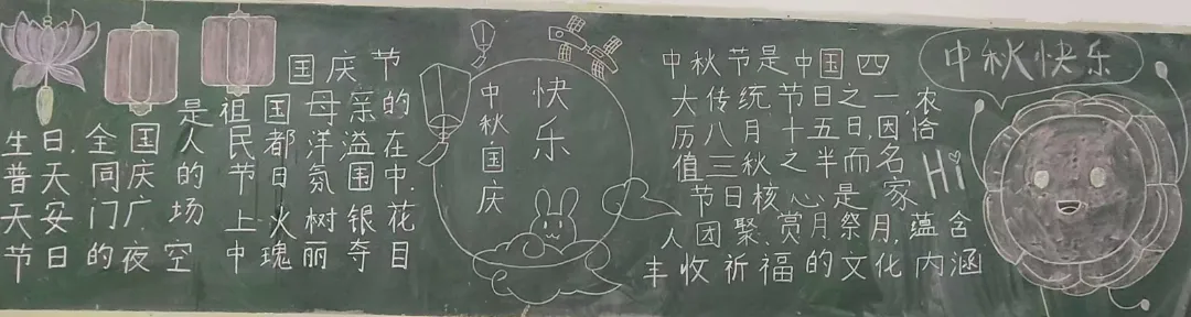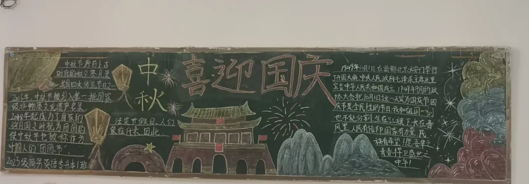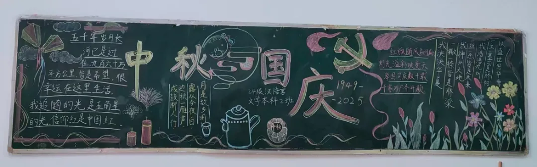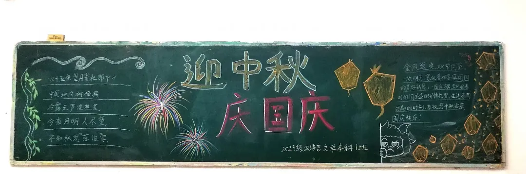 盛世华诞,恰遇中秋佳节,举国同庆。为庆祝新中国76周年华诞与中秋佳节,推进校园文化建设,充分发挥黑板报的宣传教育作用。在国庆节与中秋节来临之际,语言与传播学院举办了“喜迎国庆,欢度中秋”主题黑板报展示活动。