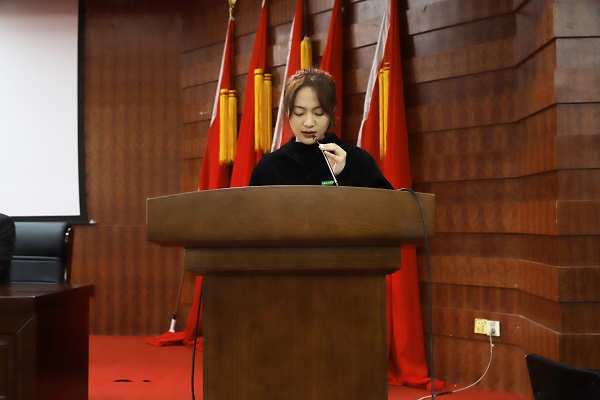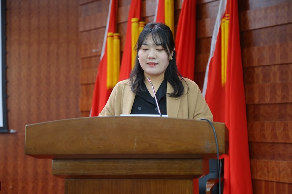 马克思主义学院“思想道德与法治”教研室主任陈以安,数字贸易学院学生代表侯羽萱分别就学校“八五”普法的重要性认识进行发言。