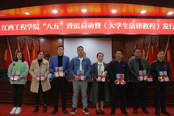 会上,校领导分别向八个教学单位和相关职能部门现场发放了《大学生法律教程》读本,并倡议我校广大青年学生应积极投身新时代全面依法治国实践,为建设法治中国宏伟征程贡献自己的青春力量。